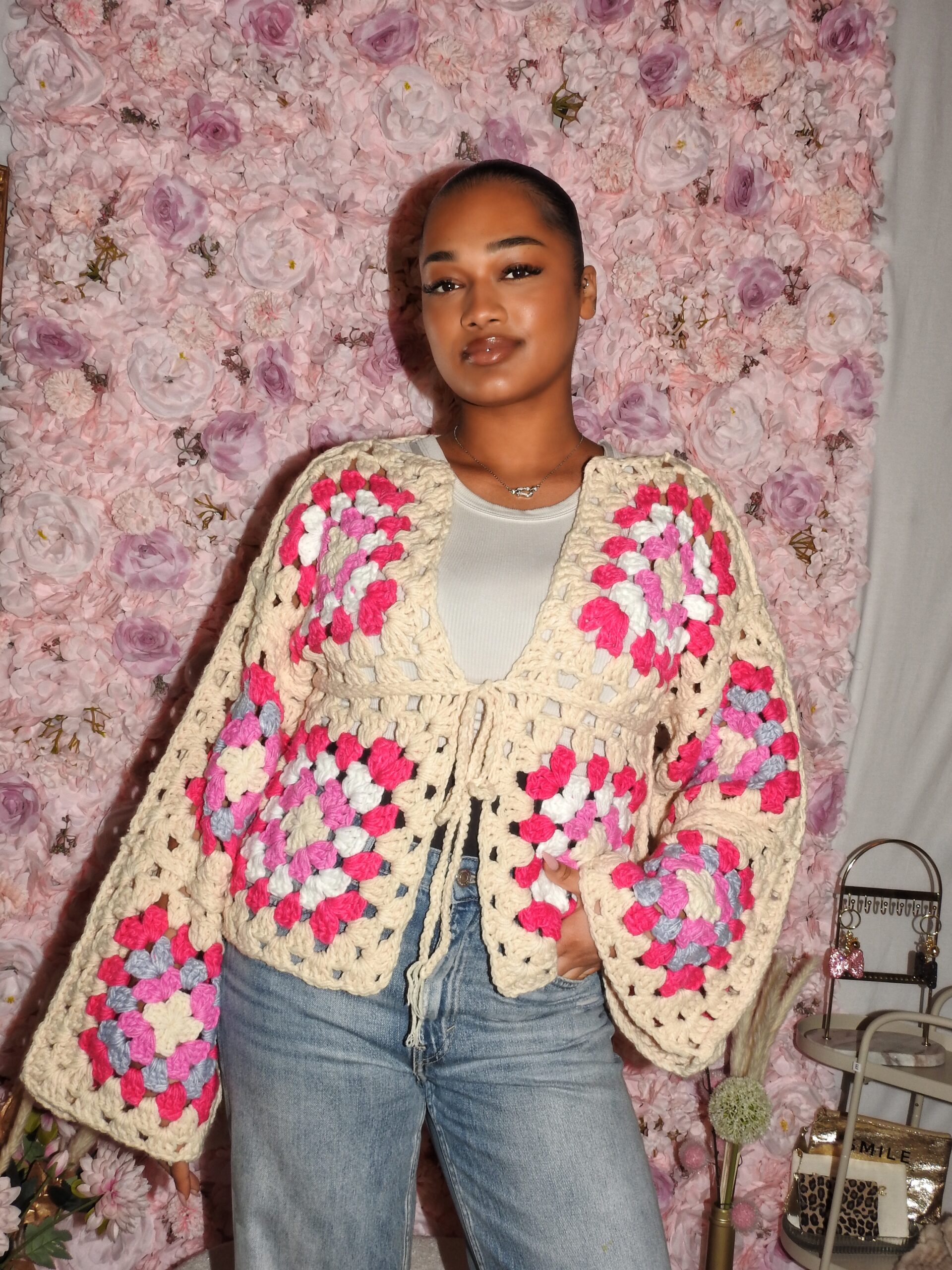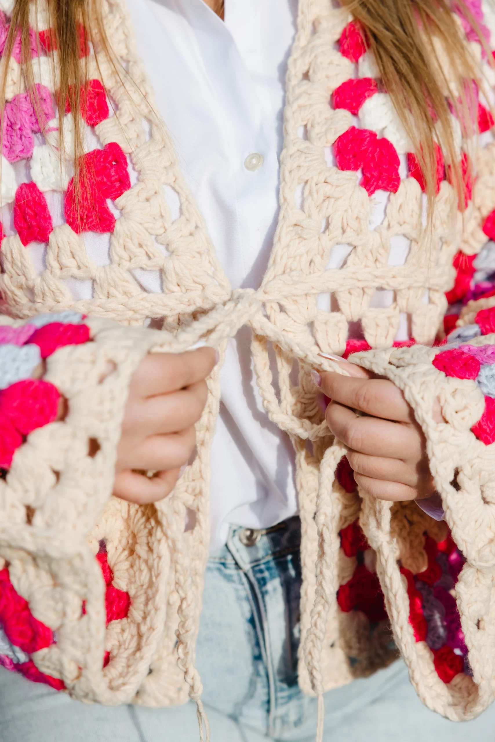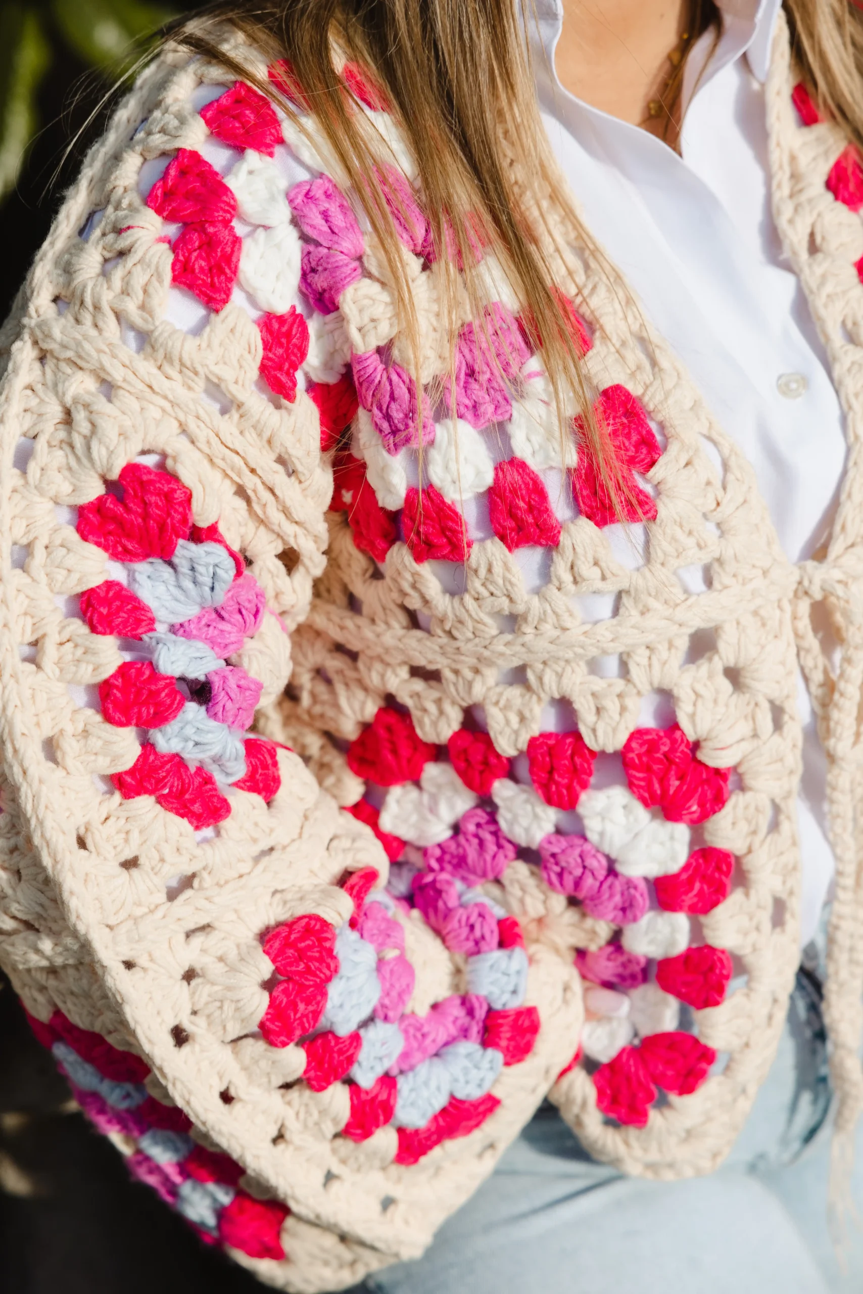 Cardigan crochet multicolore – Taïna