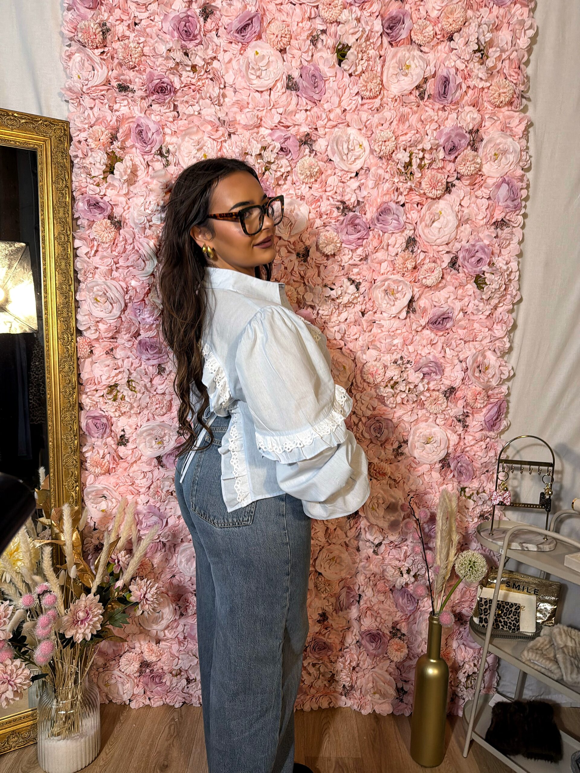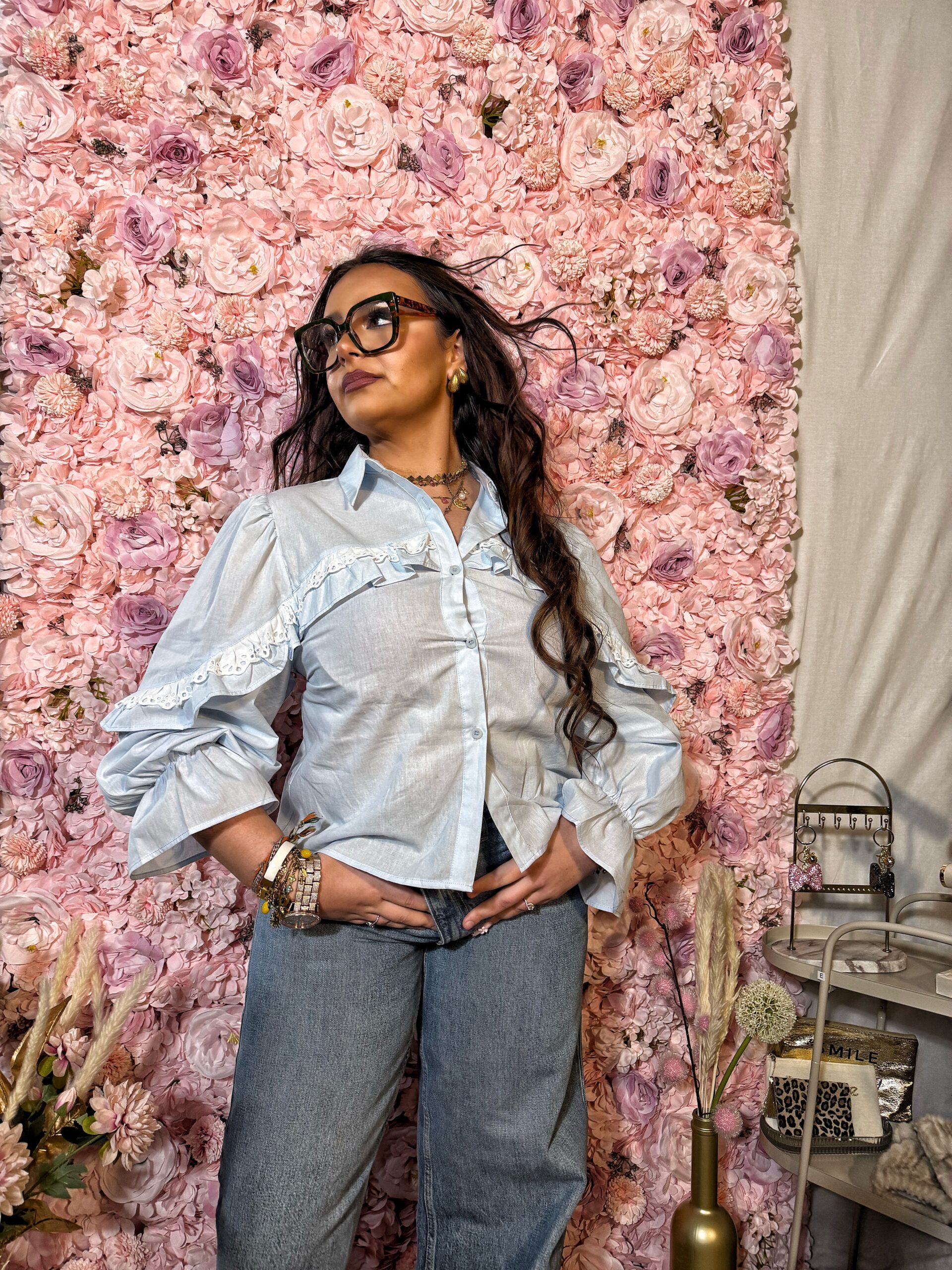 Chemise en coton à volants et détails en dentelle – Camélia