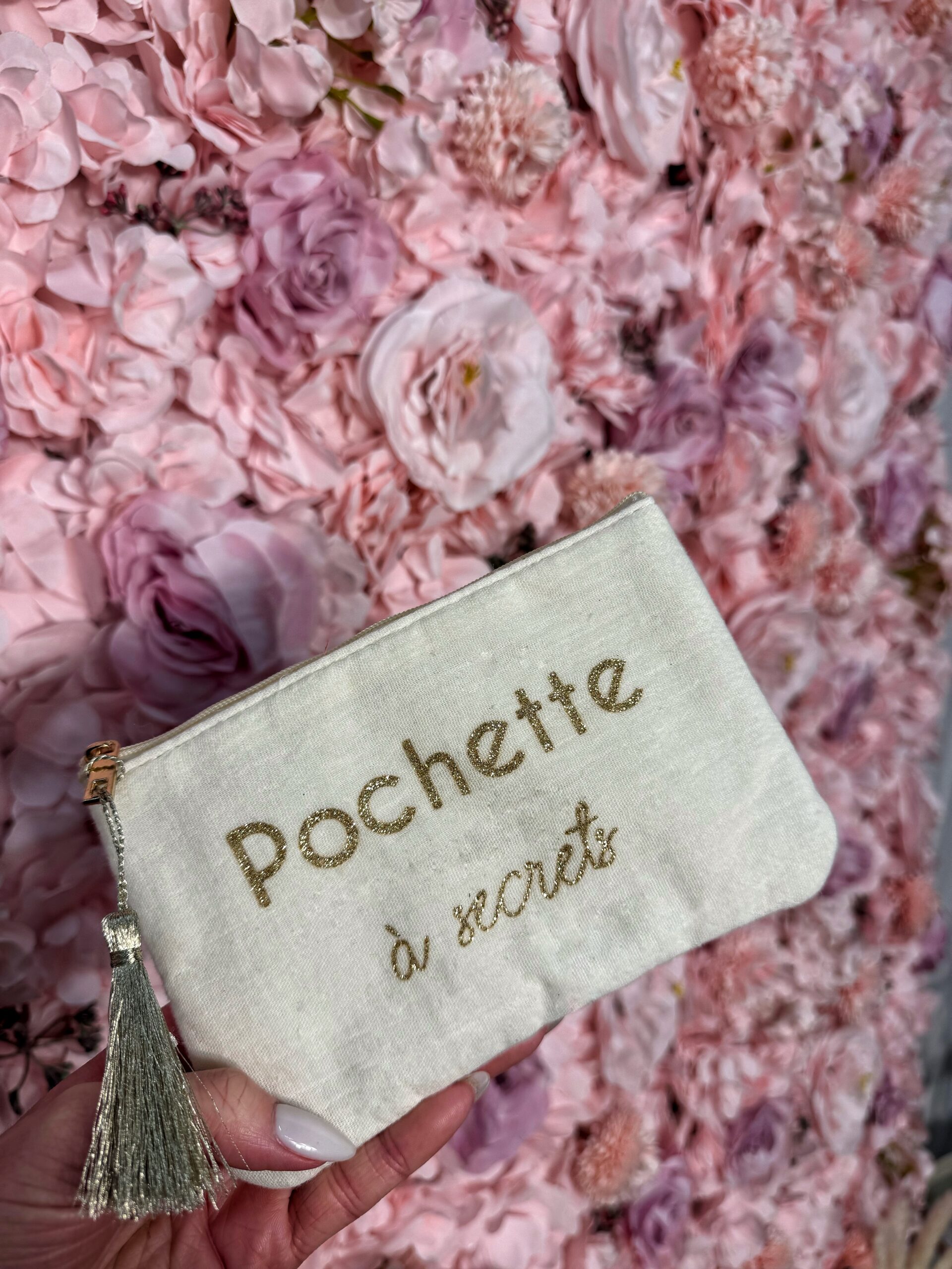 Discrète et pleine de charme, la pochette À Secret est idéale pour garder précieusement vos petits indispensables. Confectionnée en 100 % coton, elle séduit par sa matière naturelle et son message délicat, parfait pour glisser mots doux, bijoux ou trésors du quotidien.