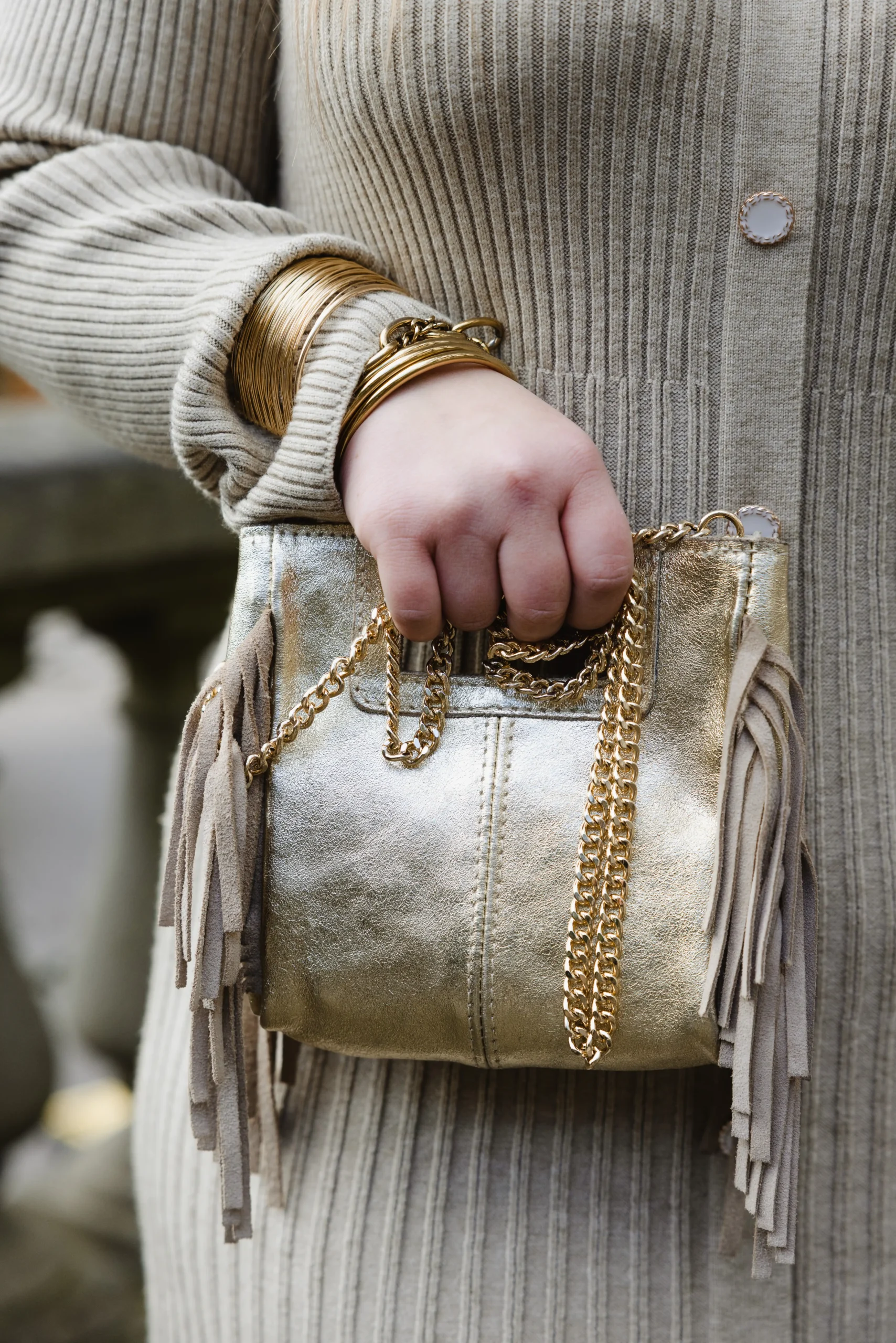 Sac à main au format compact, le sac Olivia séduit par son design élégant et ses franges délicates qui apportent une touche bohème et moderne. Conçu pour allier style et praticité, il se porte aussi bien à la main qu’en bandoulière grâce à sa chaîne fine.